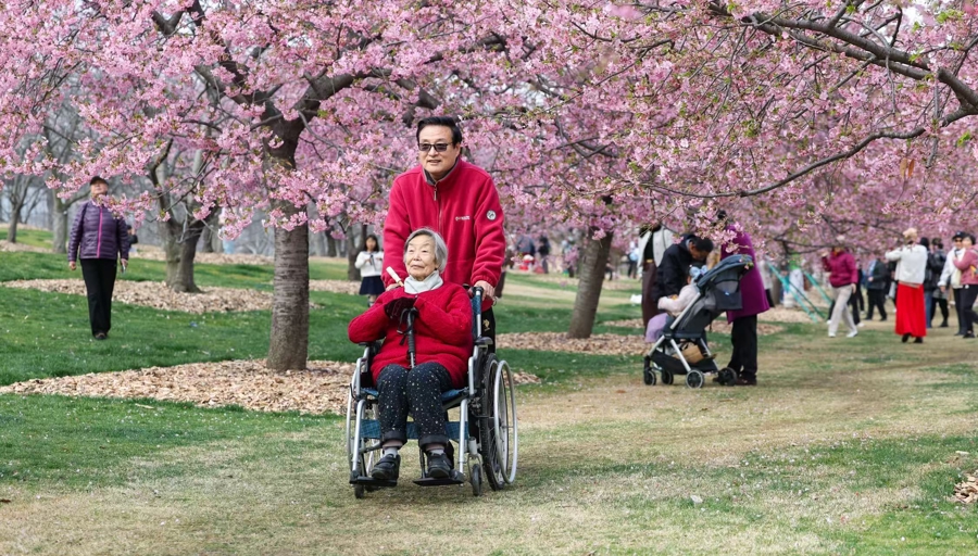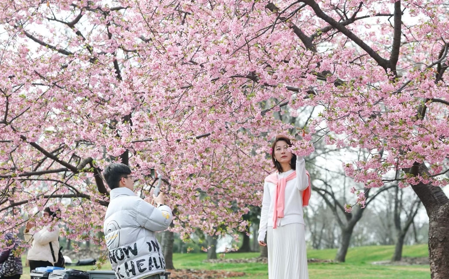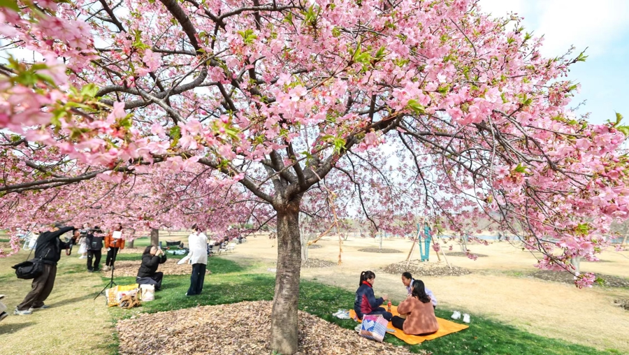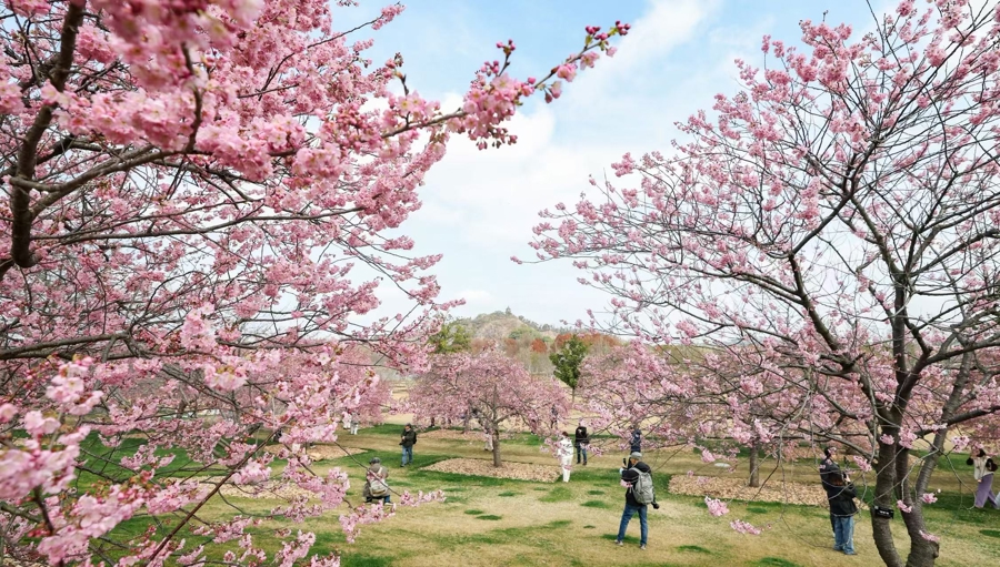 2月28日,上海辰山植物园樱花迎来盛花期,繁花如云、灿若云霞,吸引众多市民游客前来赏樱打卡。